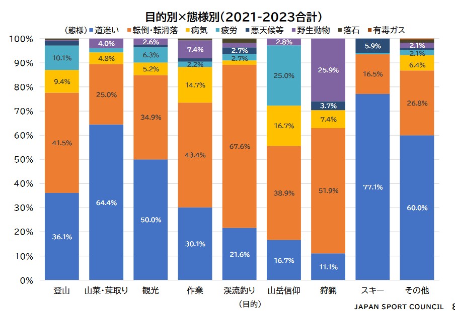 特に、中高年層の「転倒・転滑落」や高齢者の「病気・疲労」の増加、若年層における「道迷い」の減少など、年代・性別・地域・季節ごとに異なる特徴のあることが明らかになりました。