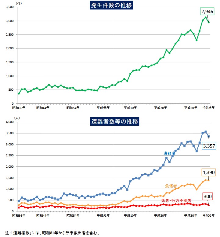 [5] 警察庁「令和6年における山岳遭難の概況等」(2025年6月19日) https://www.npa.go.jp/publications/statistics/safetylife/r06_sangakusounan_gaikyou.pdf