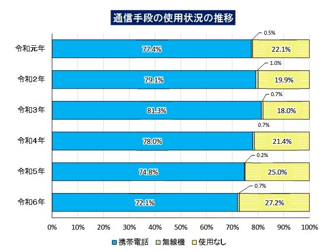 よく理由が分からないのが図8に示した携帯電話の使用率の推移です。遭難時に携帯電話等を使用したのが7割以上いるのですが、その比率が年々低下している傾向があります。
