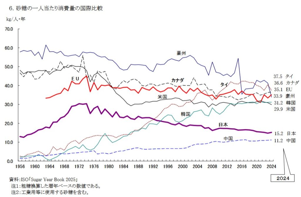 [1] 令和7砂糖年度における砂糖及び異性化糖の需給見通し(第3回) https://www.maff.go.jp/j/seisan/tokusan/kansho/attach/pdf/satou-40.pdf