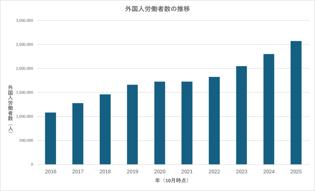 1月30日に厚生労働省より「外国人雇用状況」の届出状況まとめ(令和7年10月末時点)が発表されました。