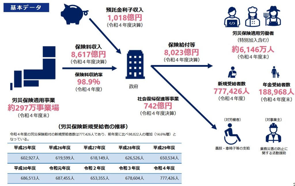 [5] 厚生労働省「令和5年度労働者災害補償保険事業年報」 https://www.mhlw.go.jp/toukei/itiran/roudou/hoken-jigyo/gaiyou/r05_nenpou.html