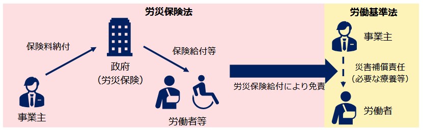 労災が発生した場合、労働基準法により事業主は補償責任を負うことになります。しかし、事業主が労災保険に加入していれば、労働基準法上の補償責任が免除され、代わりに労災保険の給付が行われます。